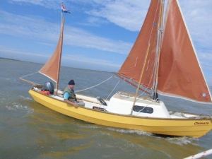 Een zelfbouwbootje uit de jaren dertig van de vorige eeuw. Ontworpen in een tijd van werkloosheid. Je kon pas echt leren zeilen in een zelfgebouwde boot, vond men toen en daar had men dan ook alle tijd voor.