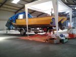 Begin seizoen 2013 was Chimera's kuip toe aan een mono-urethaan beurt. De kajuit was het seizoen ervoor al gedaan. Mijn toenmalig stallingsadres stond niet toe dat binnenshuis te laten geschieden dus huurde ik voor een weekje een overdekte ruimte ergens anders om de klus te klaren. Als schipper op leeftijd behoor je dat te laten doen maar omdat ik nog niet op leeftijd ben doe ik zoiets zelf. Het weekje werden twee weekjes maar toen was het gepiept.