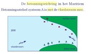 "De gebruikelijke richting van de betonning volgt daarbij de vloedstroom, of anders de richting waarin de schepen het land of een riviermonding naderen".
